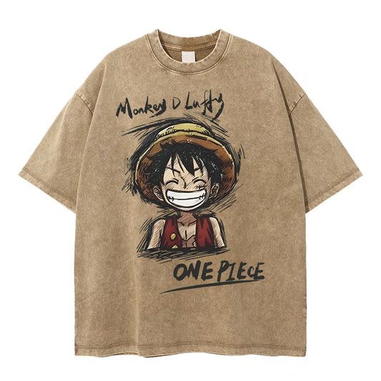 Monkey D Luffy Vintage Washed Oversized T - Shirt | Anime Graphic Tee